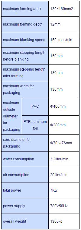 PVC步進方式,在PVC加熱板之前和成型臺之后兩處氣動夾特點,由于采用雙夾持步進,可防止加熱區內已經被加熱軟件的PVC片由于受快速牽拉移動而造成拉伸變形,影響泡罩質量。本機可以實現高速成型,又能保證良好的泡罩質量。